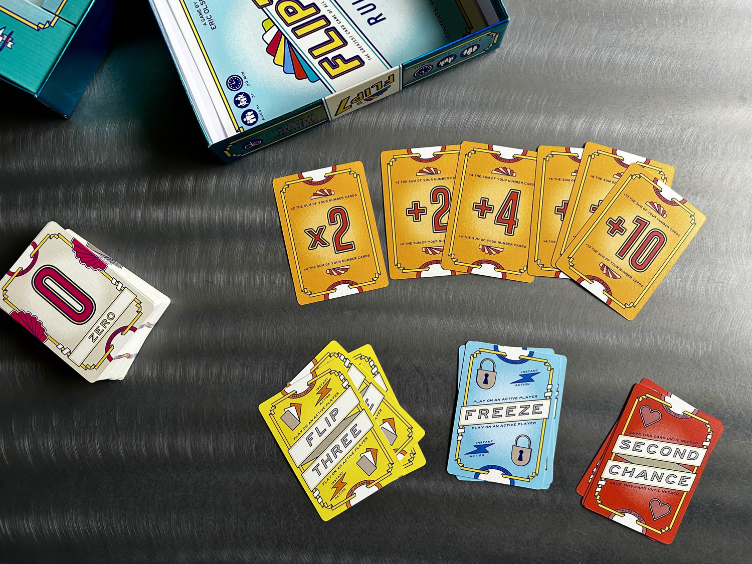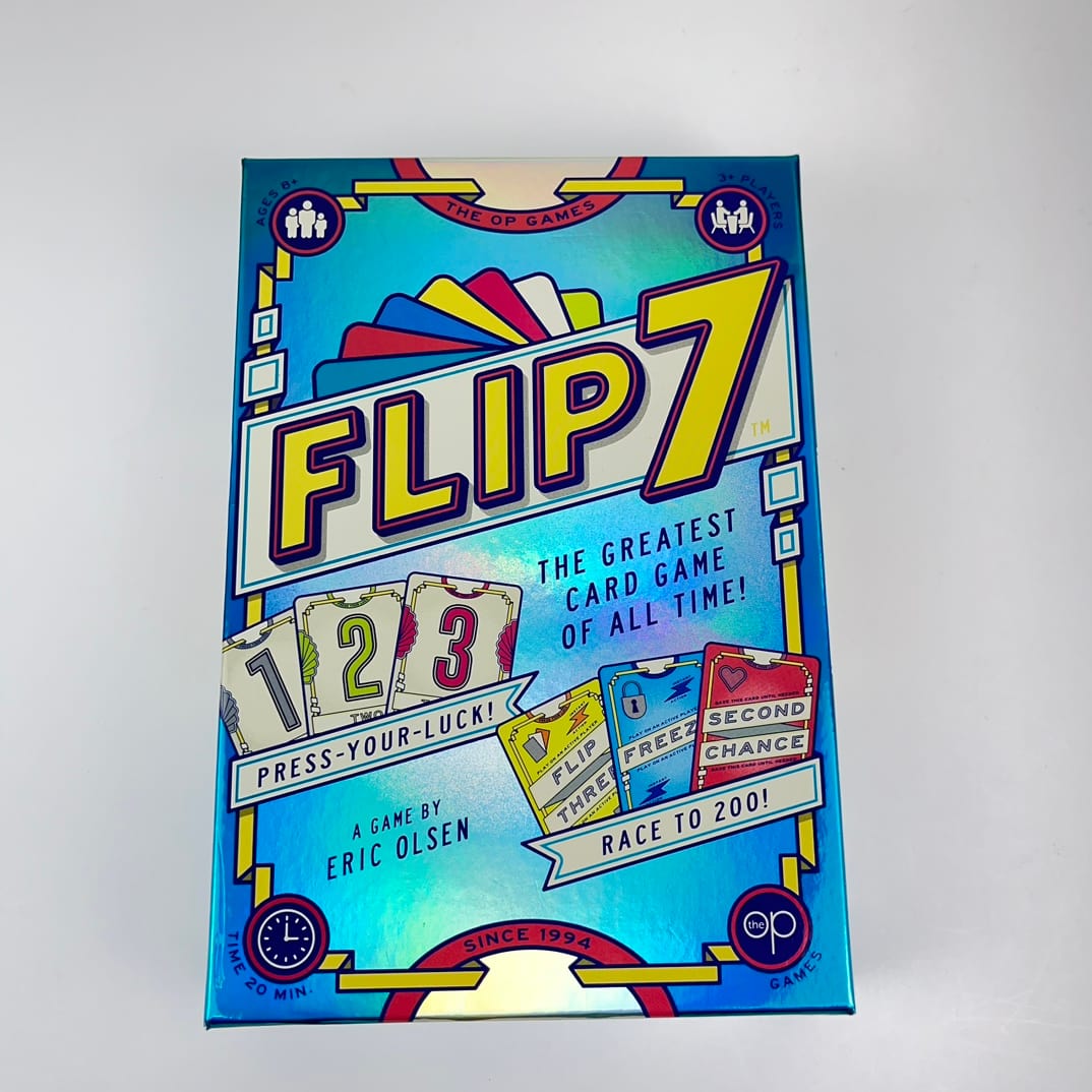 플립7은 에릭 올슨(Eric Olsen)이 디자인하고 The OP Games에서 출간한 카드 게임입니다. 3명 이상의 플레이어가 즐길 수 있으며, 플레이 타임은 약 20분 정도로 부담없이 즐기기 좋은 게임입니다. 8세 이상이면 누구나 쉽게 배울 수 있어 가족 게임으로도 완벽합니다.