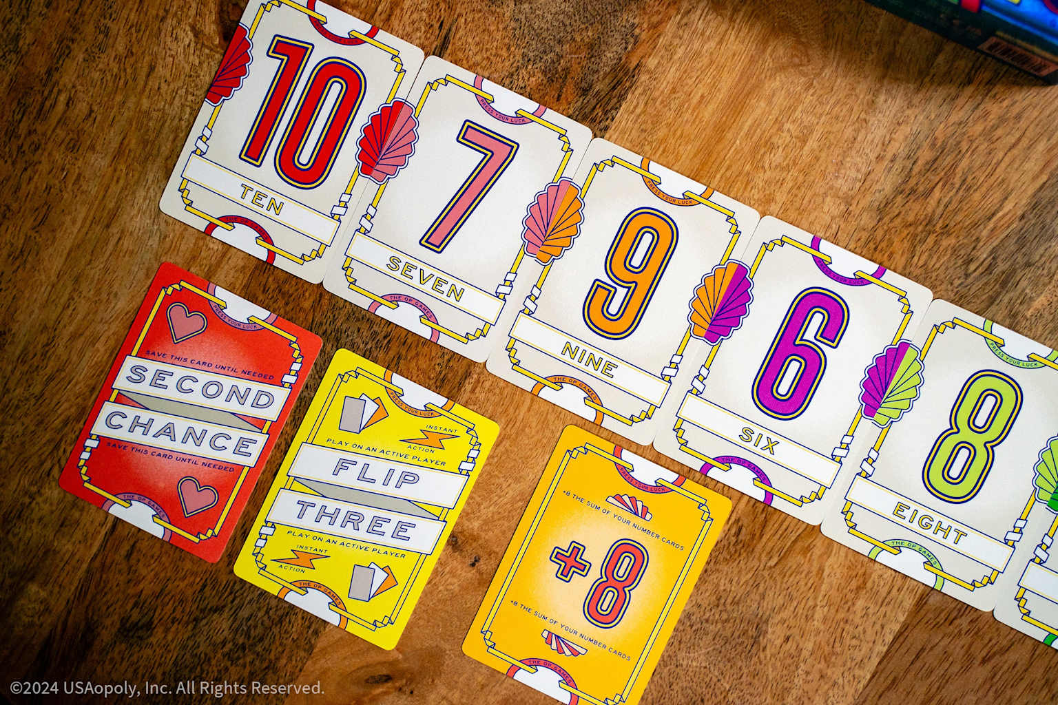서로 다른 숫자 카드 7장을 성공적으로 뽑으면 "플립 7"을 달성하게 됩니다. 이때 15점의 보너스 점수를 받고 라운드가 즉시 종료됩니다!